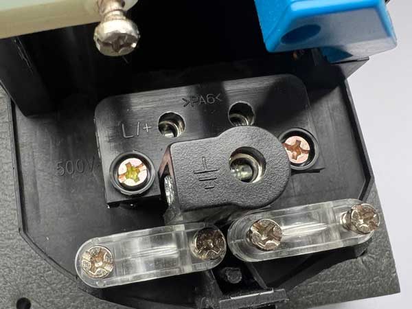 De aansluitingen zijn vaak duidelijk aangegeven: de aardedraad wordt aangesloten op het symbool met de omgekeerde T en twee streepjes eronder, de fasedraad op de aansluiting gemarkeerd met een L (soms met een + erbij) en de nuldraad op de aansluiting met de aanduiding N. Op onderstaande afbeelding is dit ook te zien.